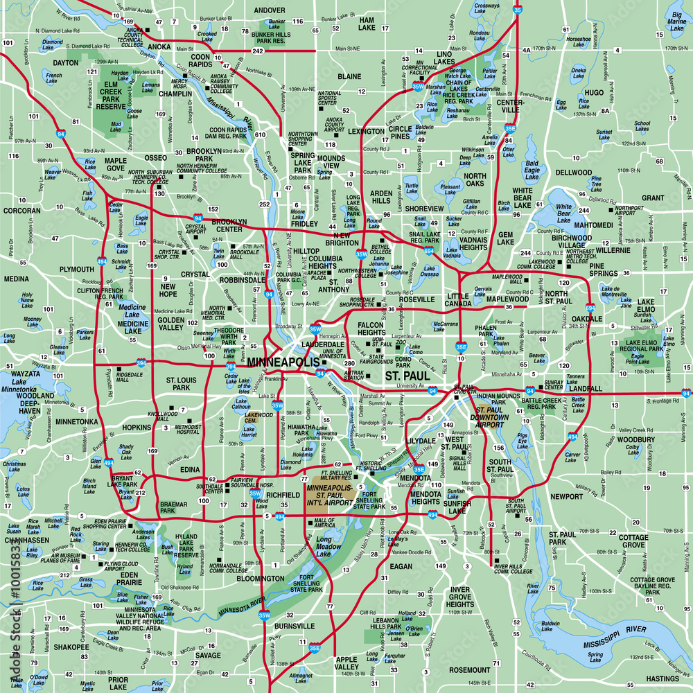 Minneapolis, MN Metropolitan Area Map Stock Illustration | Adobe Stock